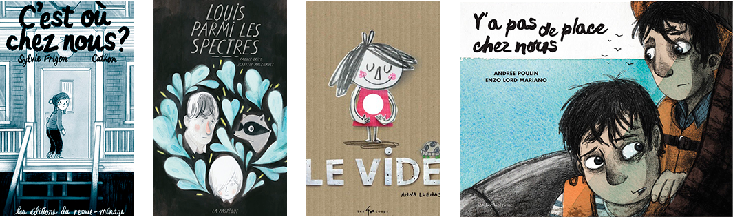 Les membres du jury ont également retenu parmi les finalistes C’est où chez nous ?, texte de Sylvie Frigon et illustrations de Cathon, éditions du Remue-ménage; Louis parmi les spectres, texte de Fanny Britt et illustrations d’Isabelle Arsenault, éditions de la Pastèque; Le vide, texte et illustrations d’Anna Llenas, éditions Les 400 coups et Y’a pas de place chez nous, texte d’Andrée Poulin et illustrations d’Enzo, éditions Québec Amérique.